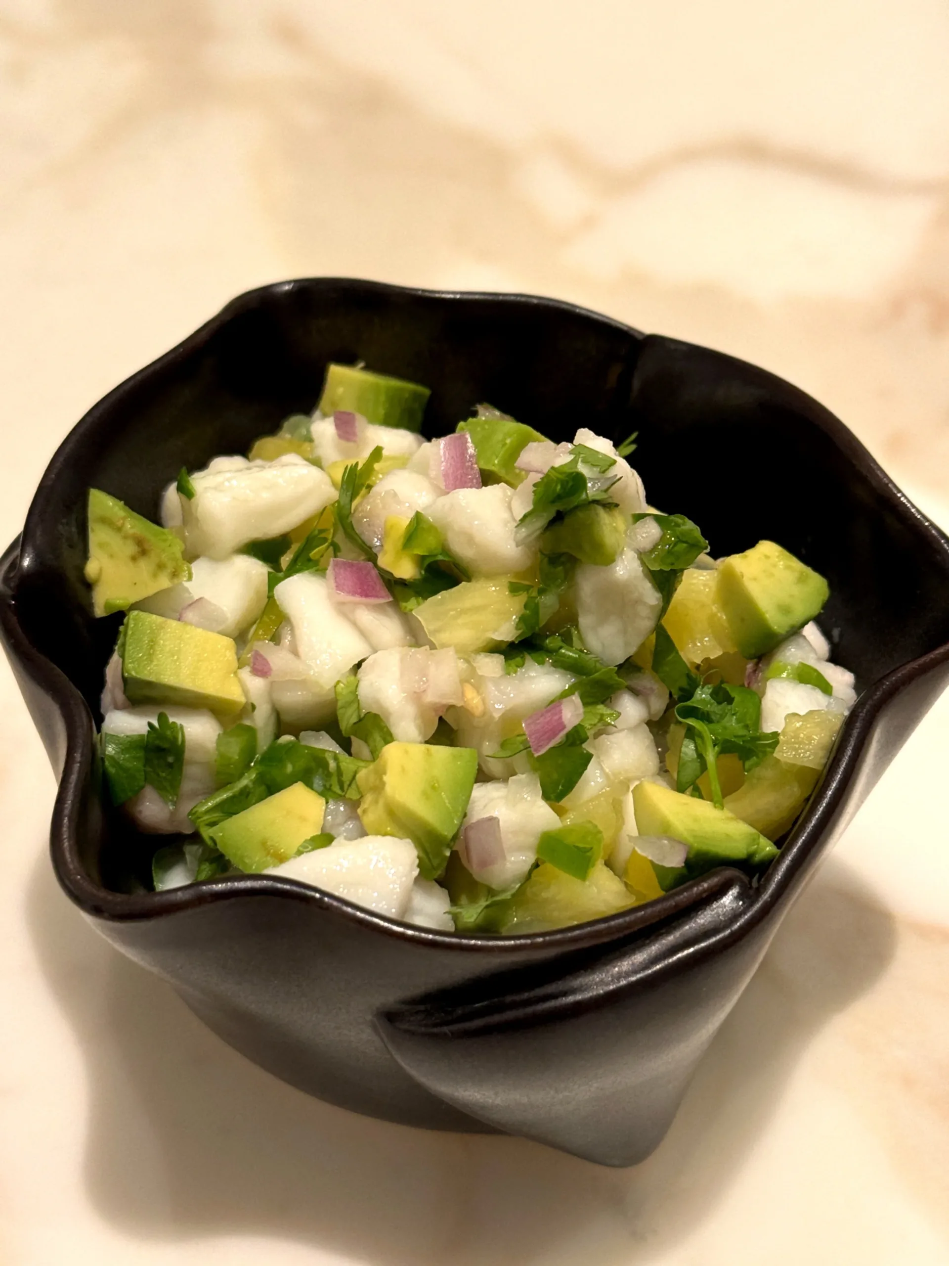 The pineapple adds sweetness, the halibut keeps the dish structured, and the avocado softens the sharper edges. It is one of the most balanced ways to do a fruit-forward ceviche.