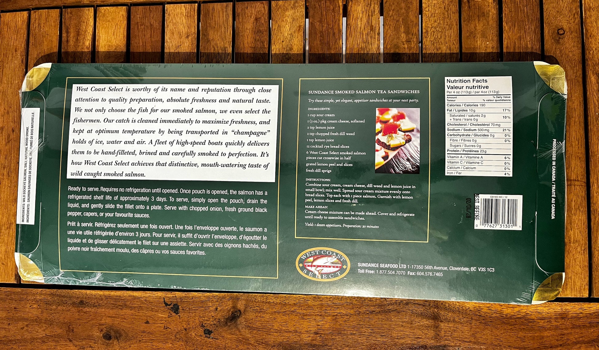 Savour the taste of Salmon that has been smoked over alderwood and preserved in its natural juices.