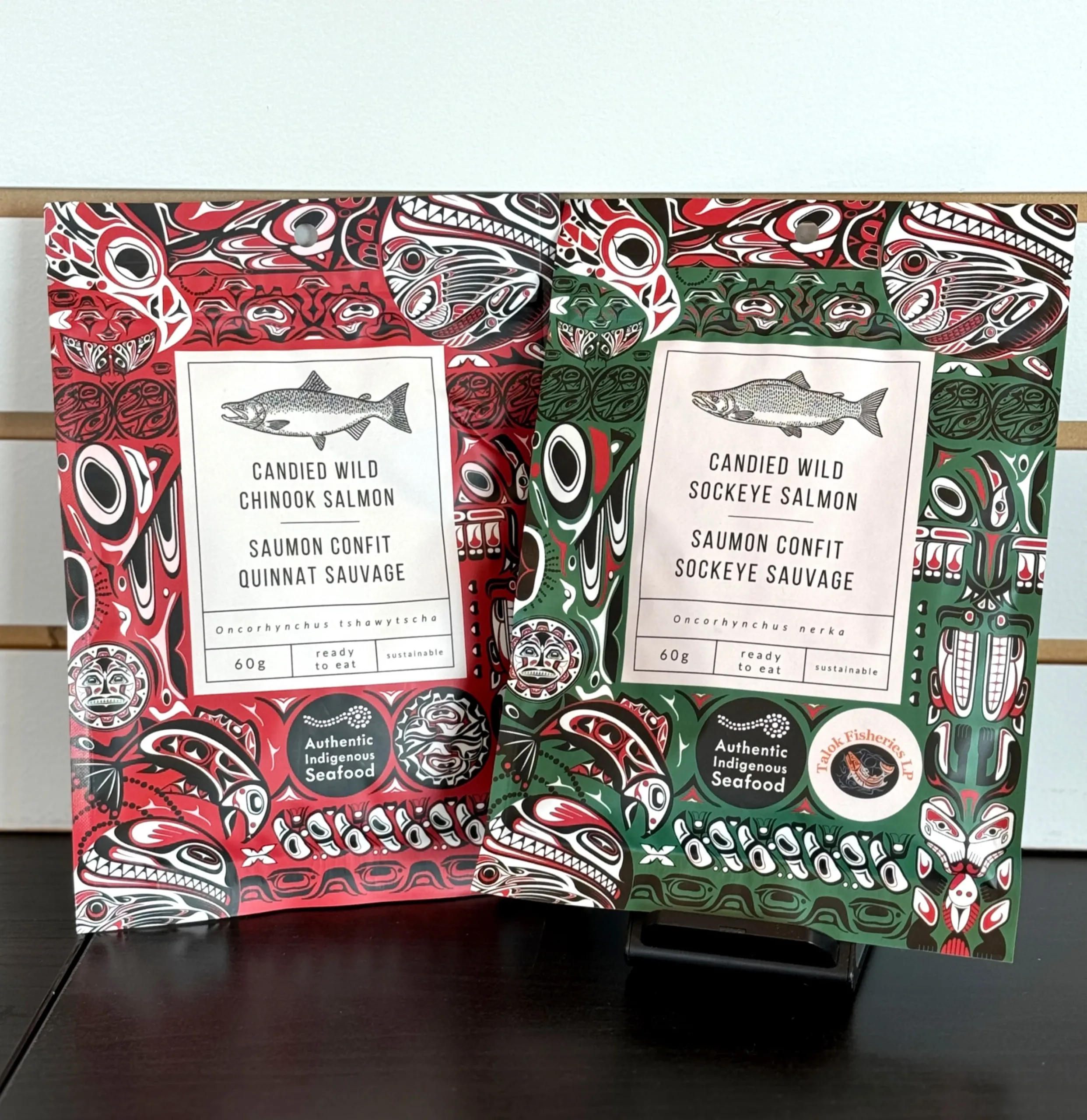 Candied wild salmon is one of the easiest options because it is compact, ready to eat, and easy to carry.